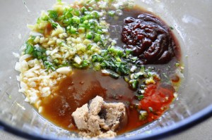 Place all of the ingredients above, minus the chicken, into a large bowl.
