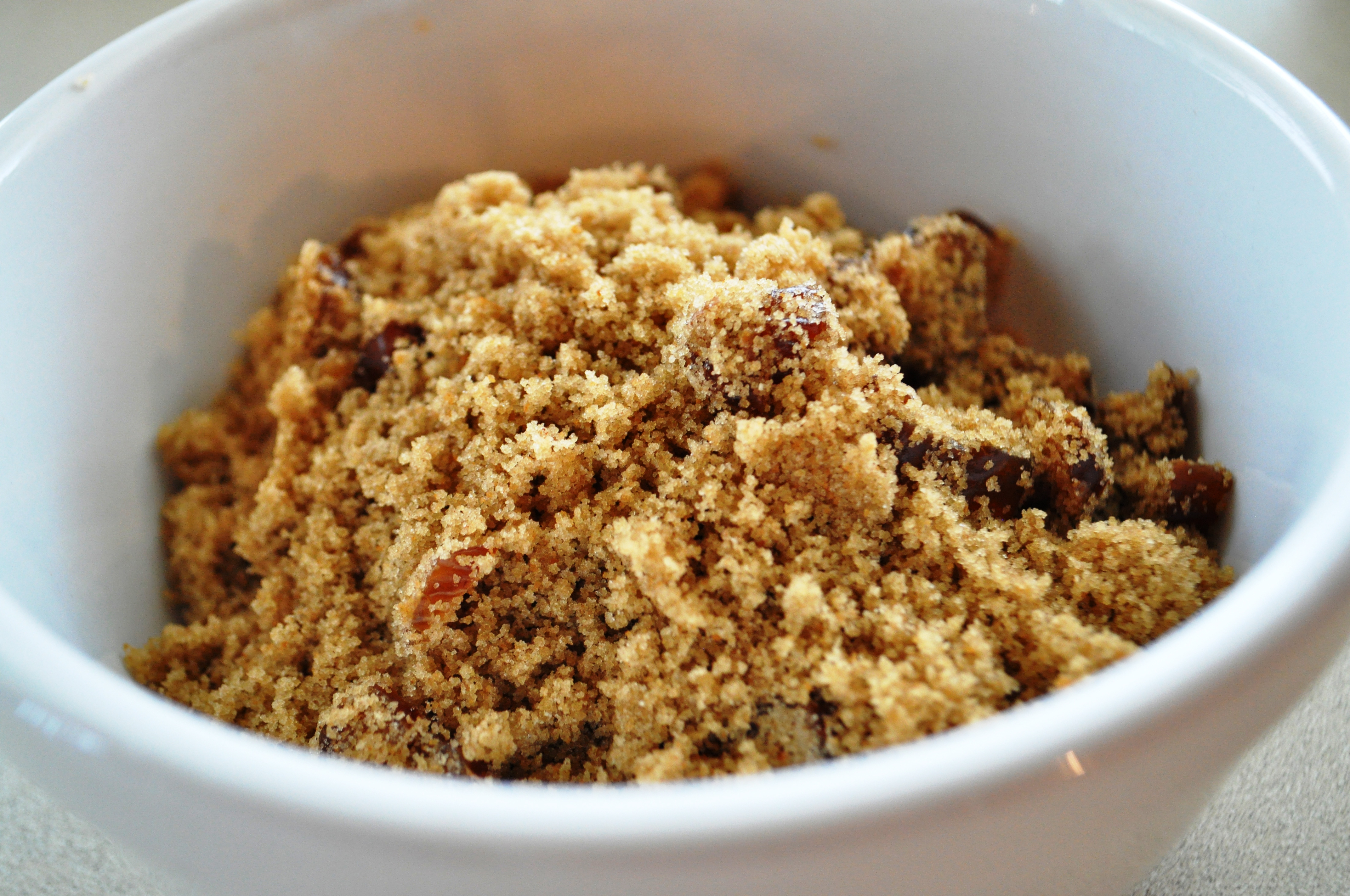 2. Make the streusel center: Mix together 1/4 cup brown sugar, 1/2 cup dates, and 1/4 tsp. ground cinnamon. Set aside.