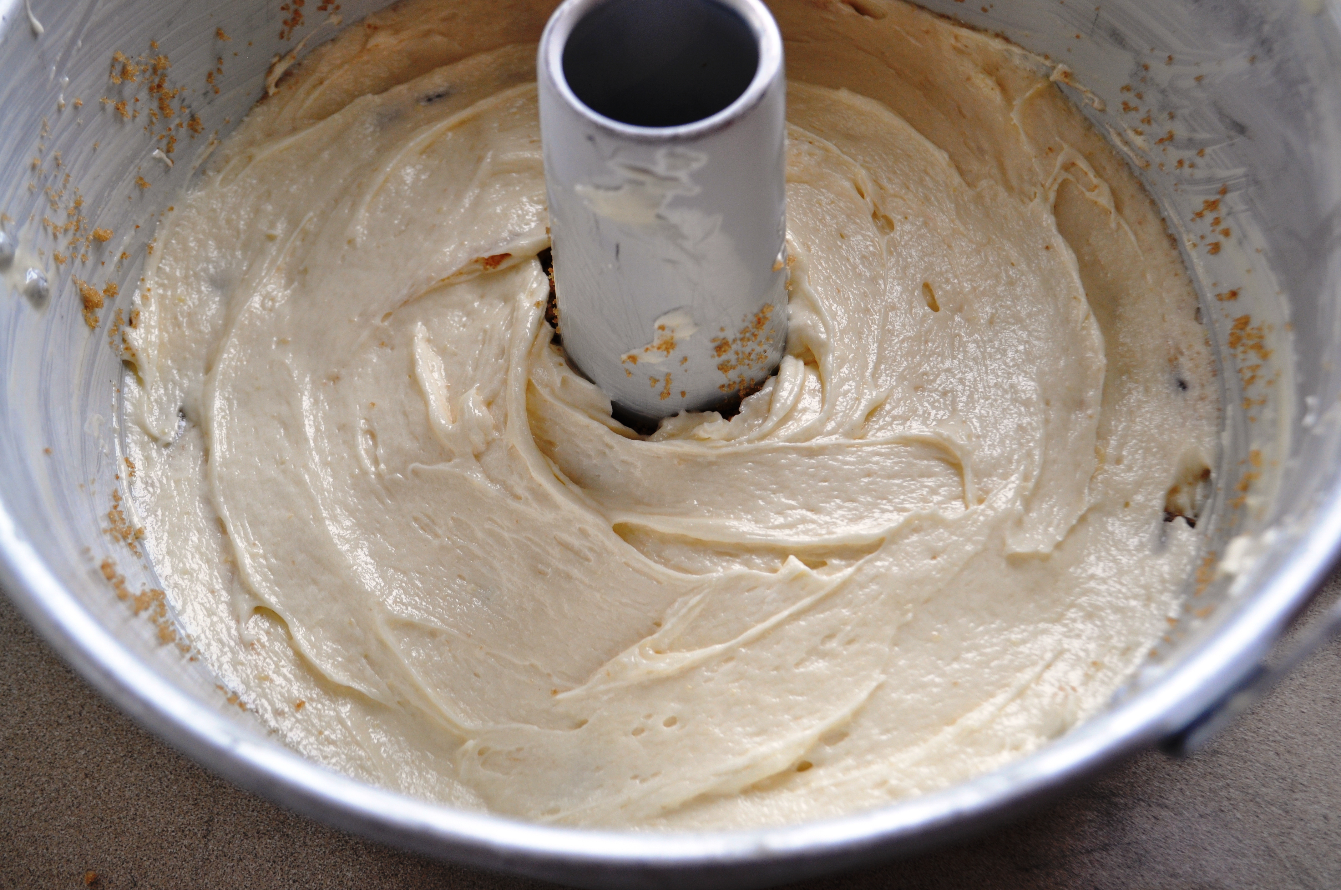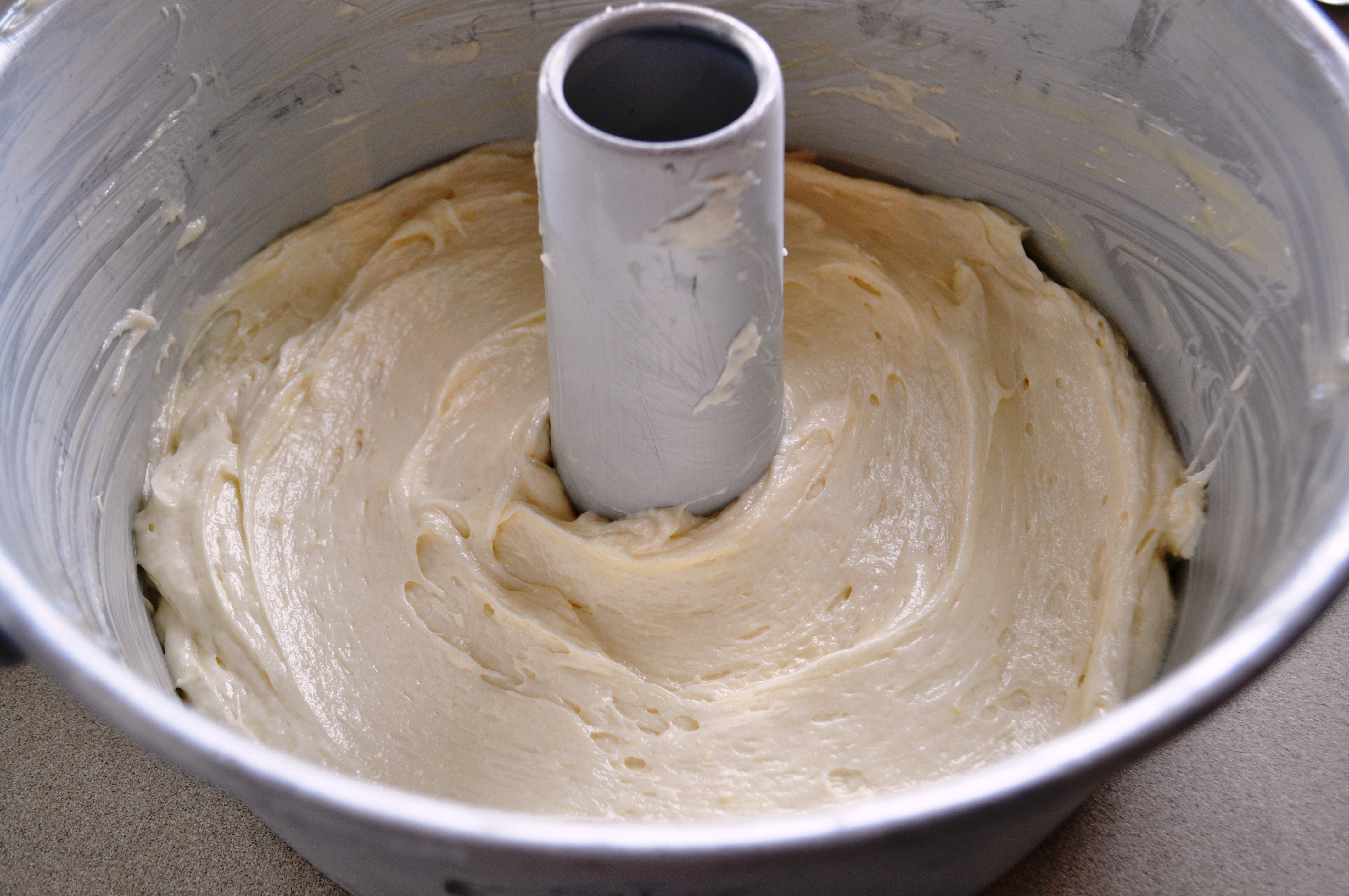 3. Make the cake: Butter (with dairy-free butter) a 9 inch tube pan with removable bottom.
