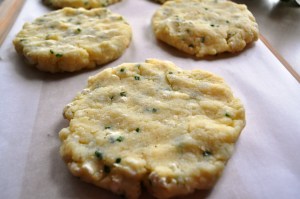 If you don’t have a dairy issue, serve the potato cakes with sour cream and chives sprinkled on top. If you do have issues with dairy, you can make a little tartar sauce with mayo, a splash of rice wine vinegar, a little dried thyme, and fresh chives on top.
