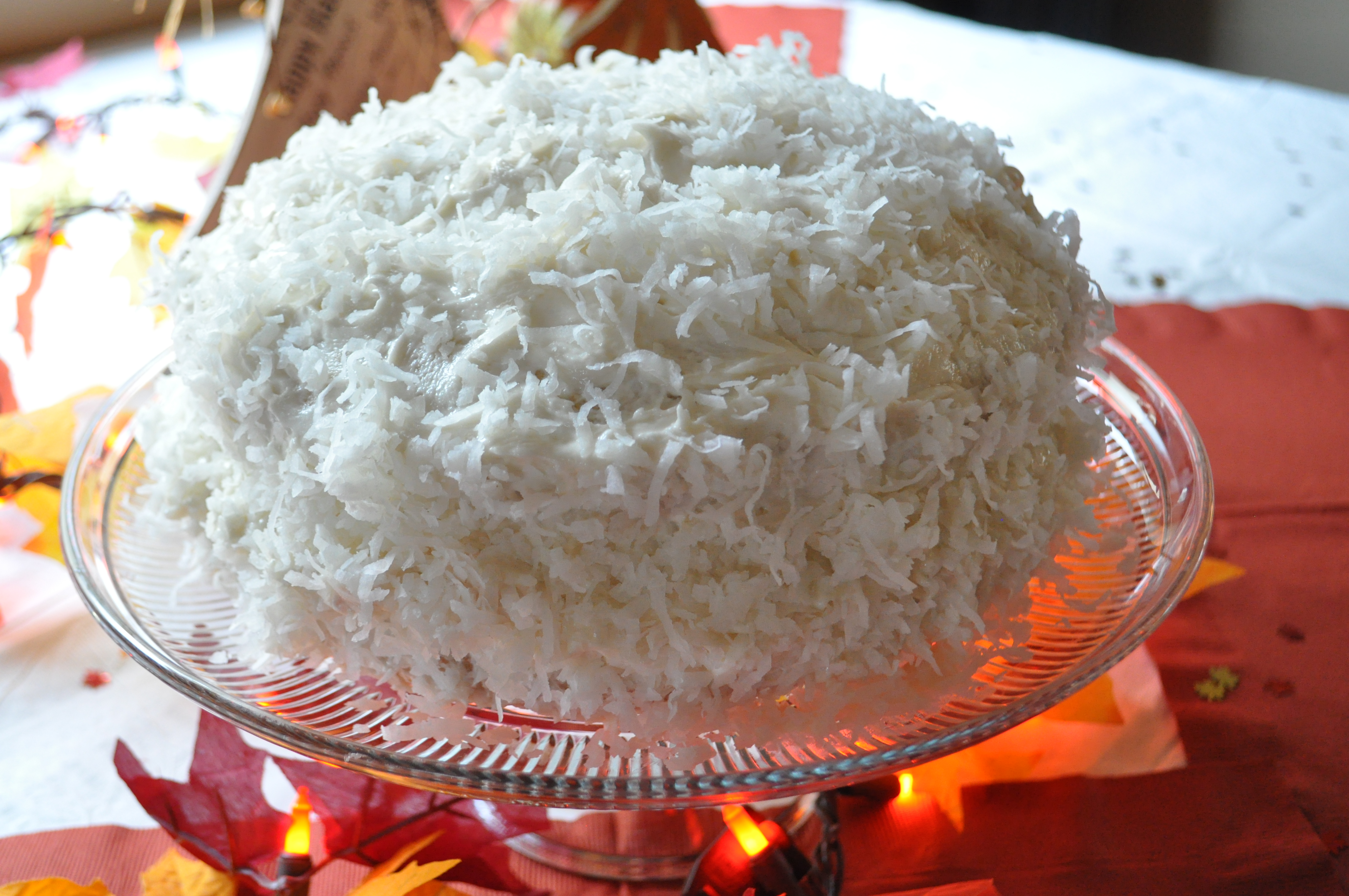 Frost the cake and press the coconut over the frosting. Cover and place somewhere cool until ready to serve.