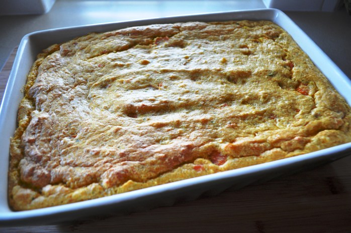 This was assembled about an hour and a half before I wanted to serve it. It needs to bake for about 45 minutes or so, depending on what else is sharing the oven. Then, allow to rest and set up for 10 minutes before cutting. You can find the recipe here.