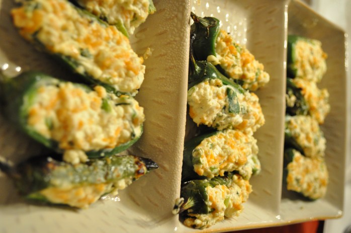 When you’re ready to grill them, set the grill to medium high. Place peppers carefully on grill and cook until they are sizzling, slightly charred on the bottom and the cheese is melted.