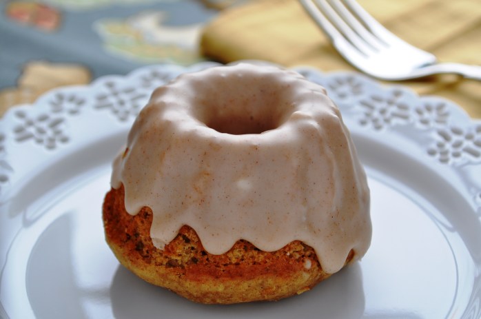 Pre-heat oven to 325° and oil 2 non-stick mini bundt pans, set aside.