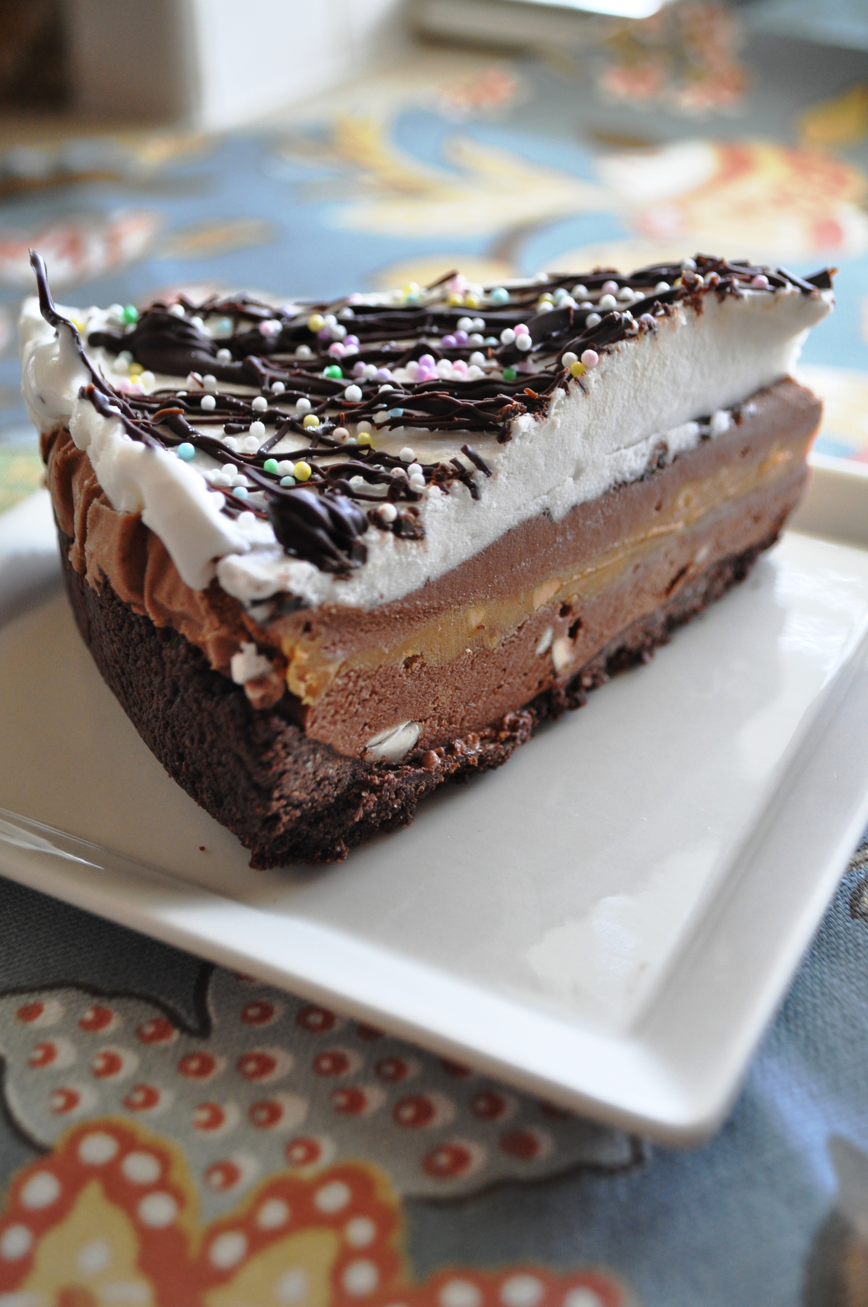 This pie is a bit of a project not because it’s hard, but because it takes time. You need to freeze each layer, which means you either need a long morning or a long afternoon to complete it. I made it yesterday morning, so I wasn’t pressed for time today. You should also be forewarned about the cost. If you’re making this gluten-free and dairy free…it’s not cheap. As you may already know, a pint of dairy free ice cream is about $5.99, this takes three. Then it takes two boxes of dairy free and gluten-free cookies, also expensive. Then there’s organic peanut butter, chopped chocolate… I save this recipe for special holidays and birthdays.