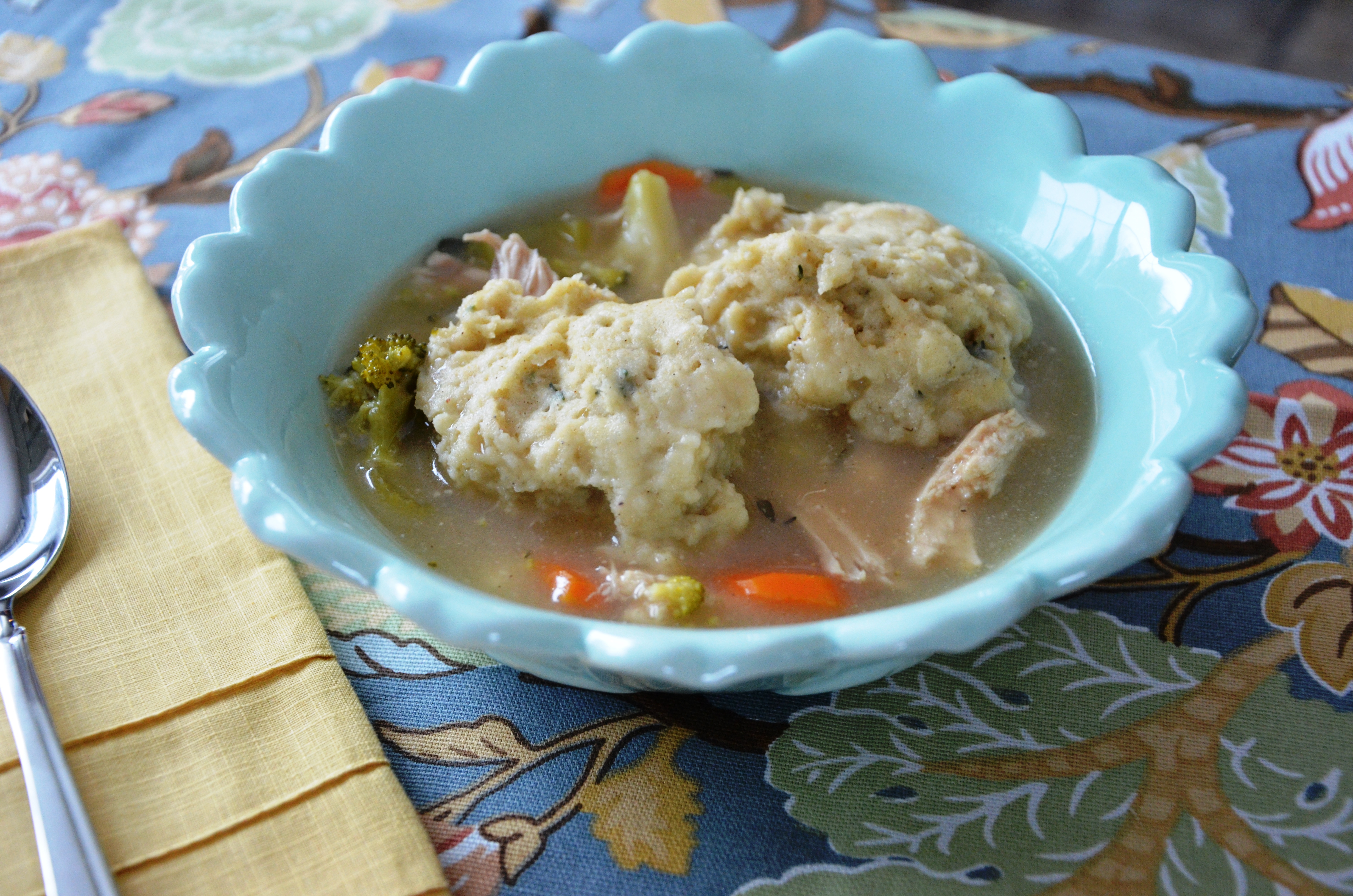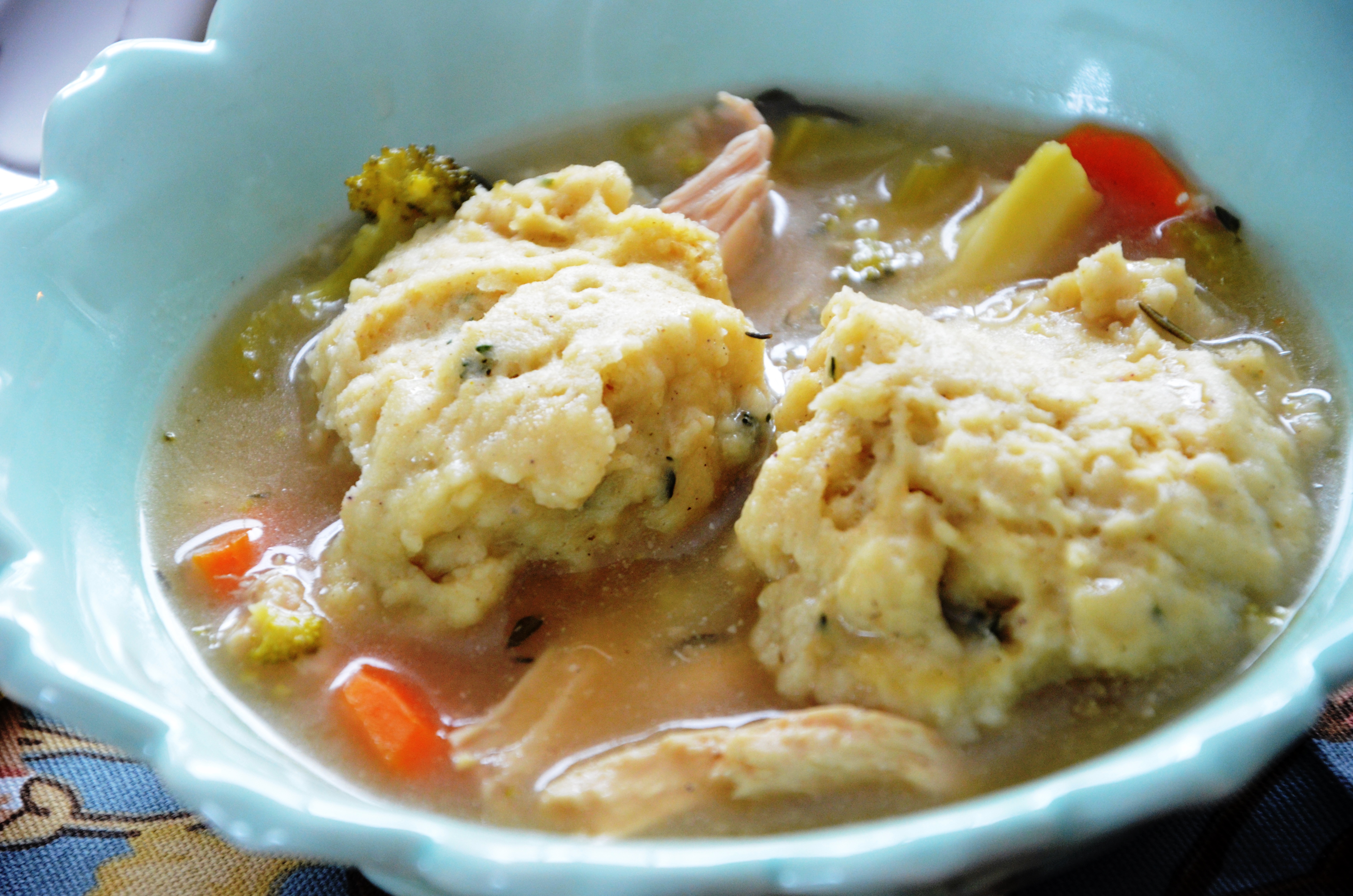 My mother-in-law used to make Chicken and Dumplings by stewing whole pieces of chicken with dumplings on top. No veggies. I used to make my own version at least once or twice a winter and, like you, dropped the dumplings over a slightly thickened chicken vegetable soup base. I haven’t made them since making the move towards gluten-free cooking/eating. I think it’s time to learn about gluten-free dumplings!