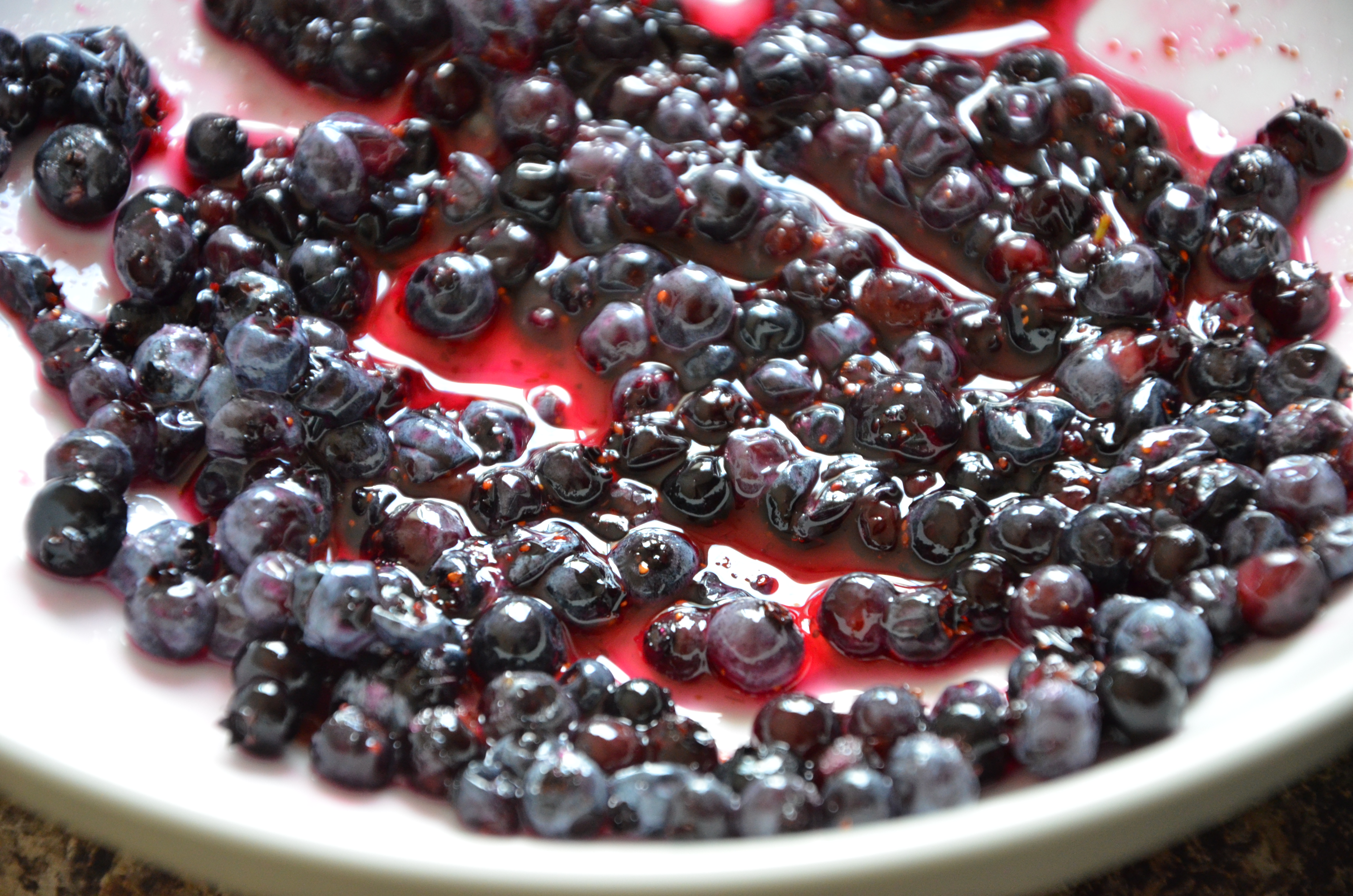 Rinse the berries if they’re fresh. Place in a small bowl and add the sugar and lemon juice. Crush (some, not all) carefully with the back of a spoon, stir, and refrigerate until ready to use.