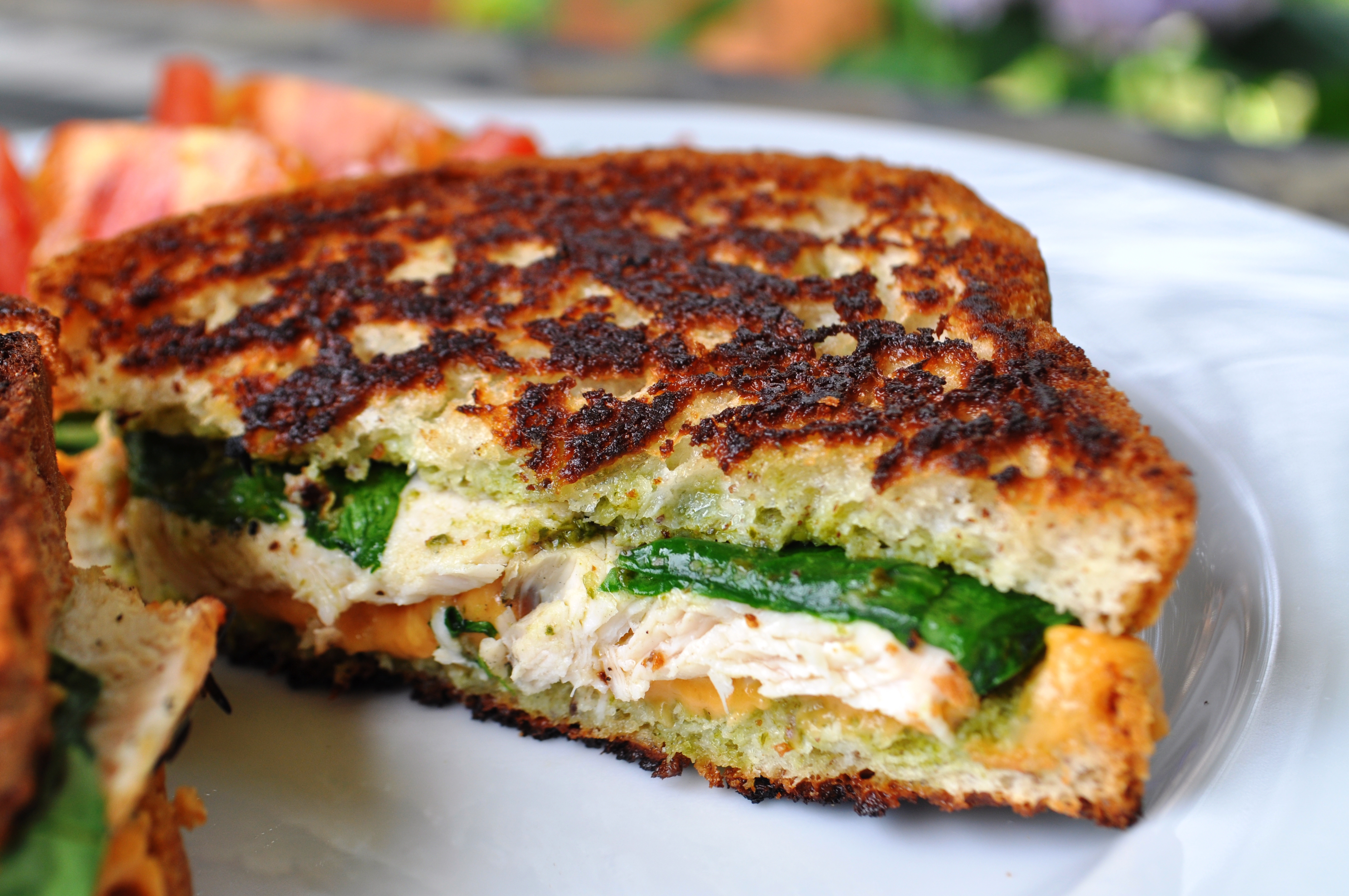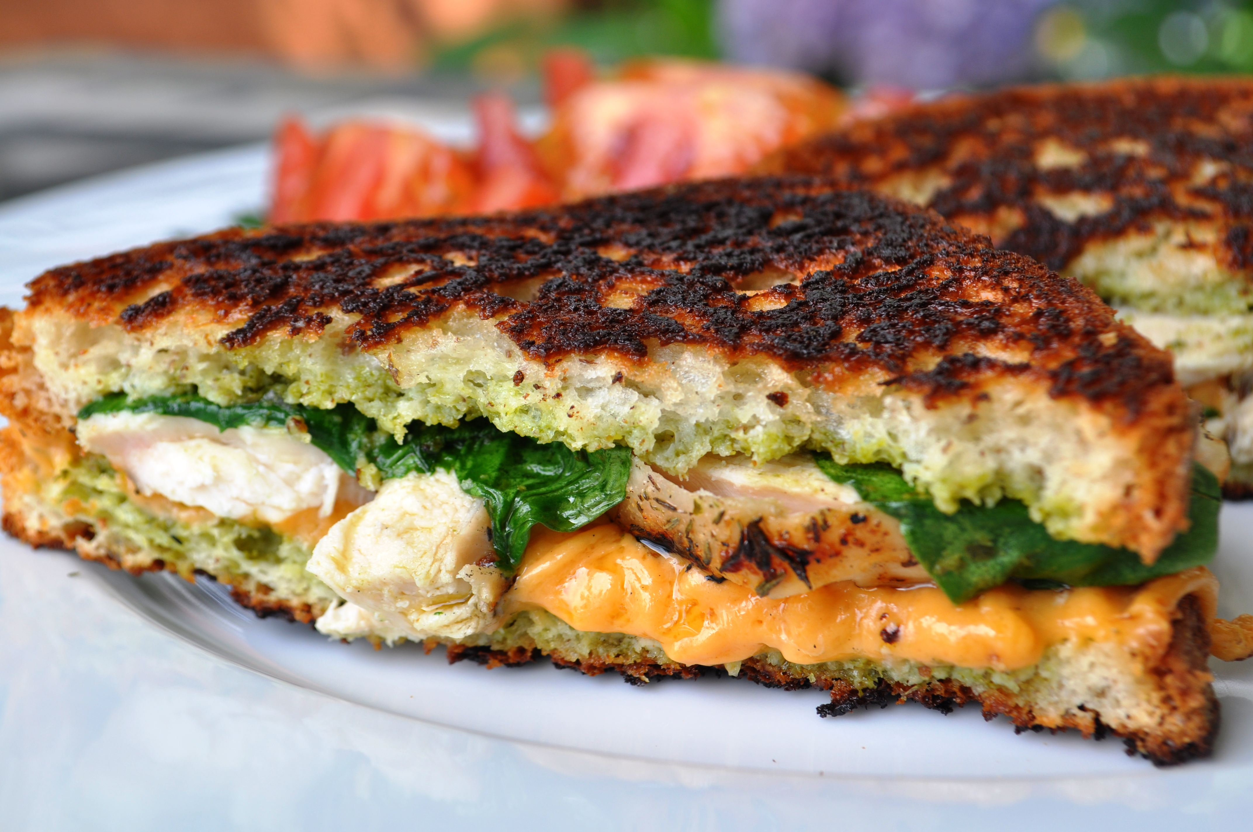 Grilled Cheese with Spinach, Chicken, & Pesto
