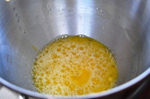 With the mixer on medium high speed, beat for 4 minutes (set a timer).