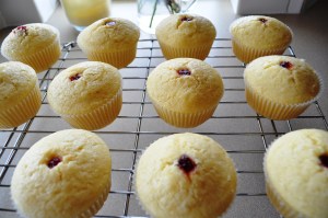 *Red Raspberry all fruit jelly – about 5 oz. or half a jar. (This will get piped into the cupcakes after they have cooled)